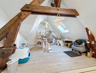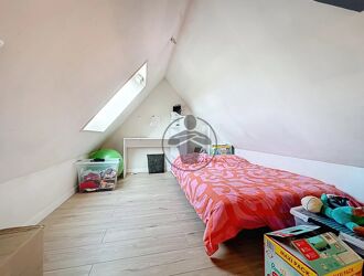 À l’étage, une troisième chambre ainsi que deux greniers aménageables offrent un beau potentiel pour créer des espaces supplémentaires selon vos besoins (chambres, bureau, salle de jeux…). Une salle de bains vient compléter l’ensemble.