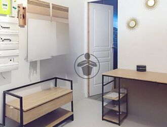- Appartement 1er étage : beau séjour, cuisine équipée avec ilot central, une chambre, salle de bains et WC. DPE : D. Loyer actuel : 680€ HC. Entrée le 21/09/2024.
