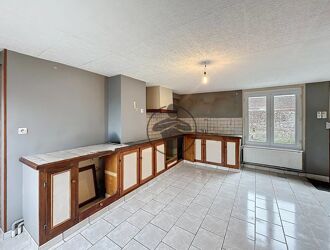 La maison se compose d’une entrée, d’une cuisine à aménager, d’une buanderie, d’une pièce de vie, d’une salle d’eau avec WC, de deux chambres ainsi que d’une cave.